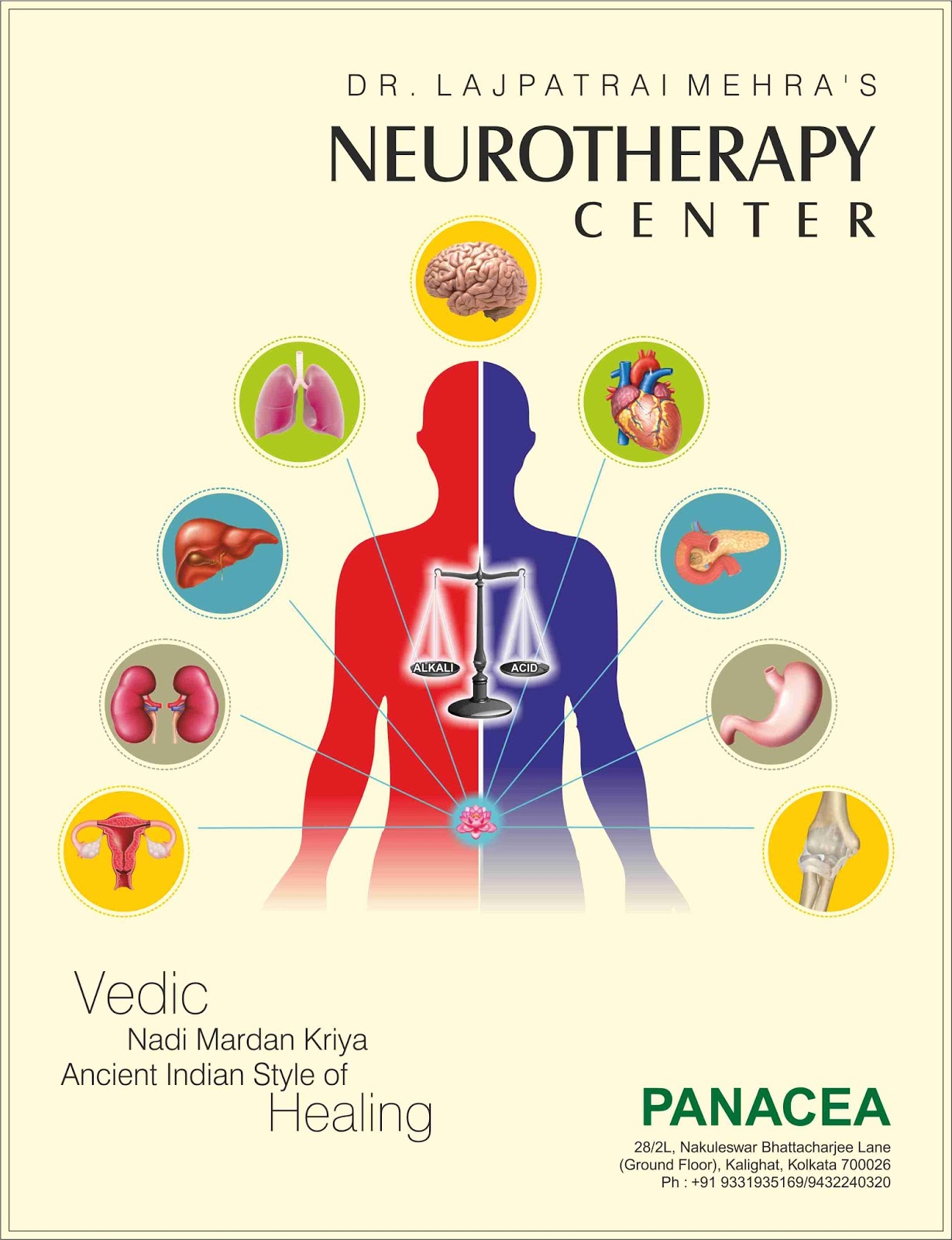 বহু বছর এর অভিগ্যতা থেকে ডাঃ লাজপাত রাই মেহেরা নাভির বেস্টনি তে এবং পা এর আগুলে ১৬ টি স্থান চিহ্নিত করেন এবাং উনি দেখেন ওই সমস্ত বিন্দু গুলির উপর নিরদিস্ট চাপ প্রযগ করলে সন্ধি-প্রদাহ নিয়ন্ত্রন করা যায় এবং রুগি মাত্র ১মাস এই কিছু আরাম আনুভব করেন। এই ভাবে উনি শুধু বাত নয় বিভিন্ন জটিল ব্যধির সফলতা পুরবক চিকিতসা সুরু করেন। গত ৫০ বছর এ সারা প্রিথিবী ব্যাপি ৭৫০এর বেশি চিকিতসা কেন্দ্র গরে উঠেছে। কলকাতা তে আমরা গত ১০বছর সাফল্যের সাথে বিভিন্ন জটিল ব্যধির চিকিতসা করছি। বিস্তারিত জানার জন্য করুন login: www.neurotherapykolkata.com